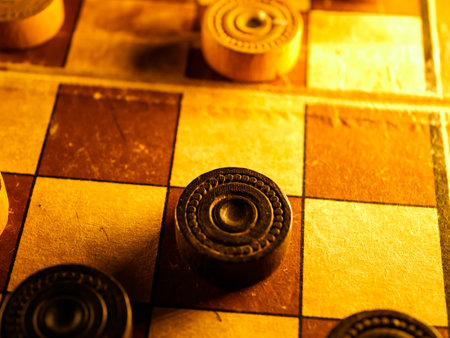 Checkerboard with checkers. Game concept. Board game. Hobby.