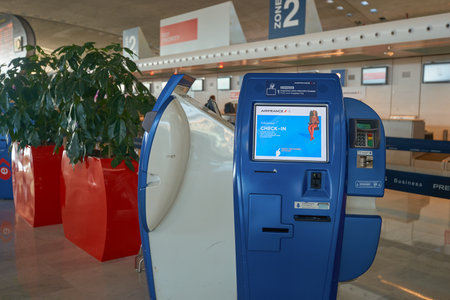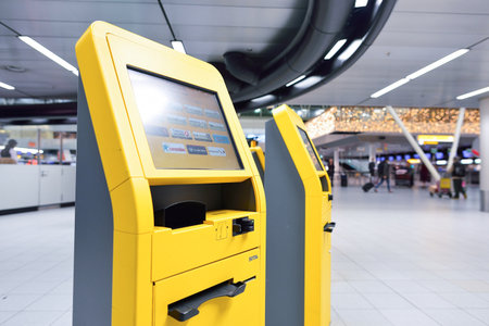 AMSTERDAM, NETHERLANDS - NOVEMBER 17, 2015: self check-in kiosk in Amsterdam Airport Schiphol. Amsterdam Airport Schiphol is the main international airport of the Netherlands.