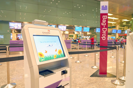 SINGAPORE - CIRCA AUGUST, 2016: self check-in kiosk at Changi Aiport. Changi Airport is the primary civilian airport for Singapore.