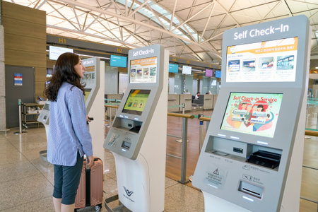 INCHEON, SOUTH KOREA - CIRCA JUNE, 2017: self check-in kiosks at Incheon International Airport.