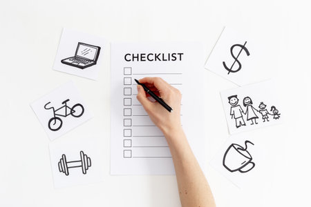 A detailed checklist on a clipboard encourages daily mindfulness with small joys to enhance well-being and enrich daily routine, creating positivity.