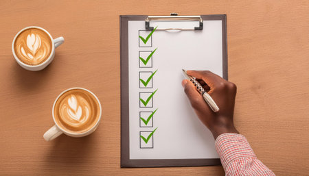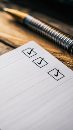 A detailed checklist on a clipboard featuring multiple check marks, symbolizing task management and effective workflow strategies in a professional office setting.