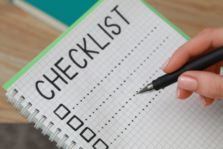 Woman filling Checklist with pen, closeup view
