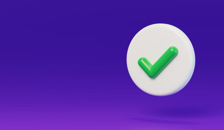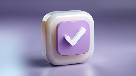 This image features a glossy purple checkmark icon against a light-colored background, representing approval, success, and modern design aesthetics for various applications.