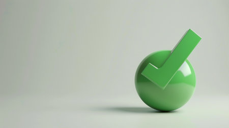 A vibrant green checkmark rests upon a glossy round sphere, representing approval and success. This design symbolizes positive choices and verification concepts.