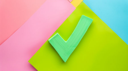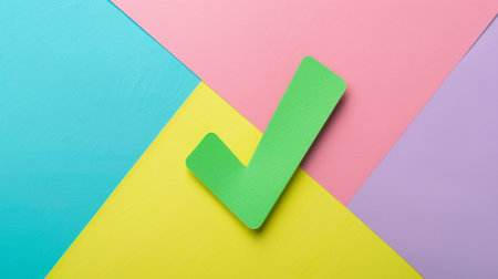 A vibrant and colorful arrangement featuring a green checkmark symbol on a bright pastel background. This design embodies positivity and success.