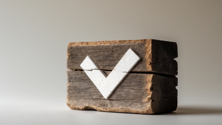 AI Generated. Closeup of a wooden block with a check mark symbolizing success studio still life creative perspective concept