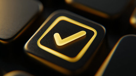 This graphic features a minimalist yellow checkmark icon with a soft shadow, set against a dark background. Perfect for modern design projects.
