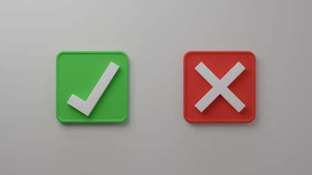 Right-wrong approved-declined yes-no positive-negative choice selection sign 3D rendering illustration