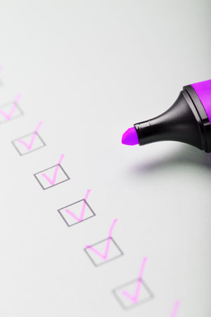 A magenta marker with markers on the control sheet. Checklist of the completed task concept.