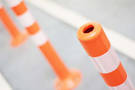 Close up orange Bollard inside carpark