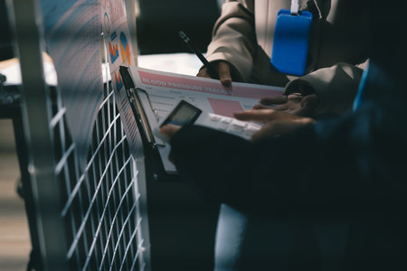 Close up high angle Asian businesswoman working with her coworker in meeting room