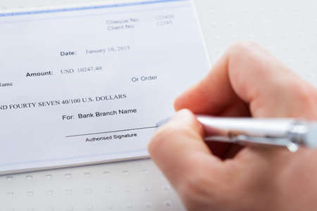 Close-up Of Hand Holding Pen Preparing Writing Check