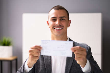 Giving Paycheck Or Payroll Cheque. Rent Check Pay