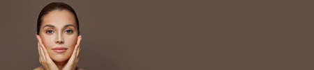 Natural beauty concept. Portrait of beautiful young woman with perfect healthy skin, glossy hair and natural make-up. Close up. Studio shot