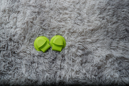 Safety respirator mask with replaceable green filters on clean surface, ideal for air pollution, industrial, Concept of protecting health from PM2.5 dust