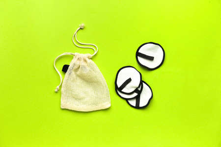 zero waste eco friendly hygiene bathroom concept. reusable washable cotton pads