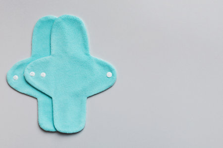 Eco-friendly reusable fabric women's pads. set of colorful bright reusable menstrual pads. zero waste woman periods concept top view with copy space.