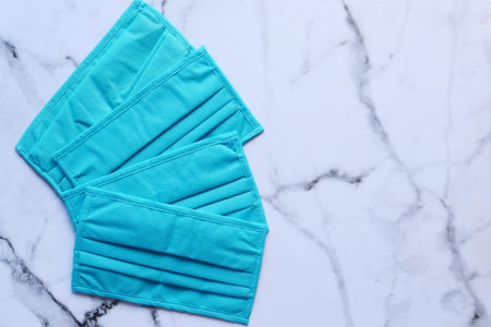 Medical masks. Coronavirus protection concept. One of the ways to reduce the spread of virus. Prevention the spread of COVID-19. Air pollution and virus protection.