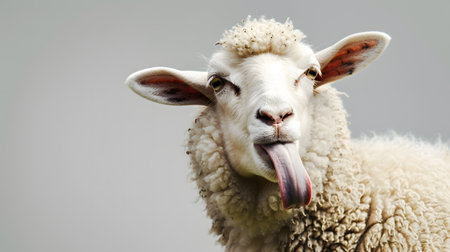 A Whimsical Portrait Of A Sheep Displaying A Playful Tongue Adding Charm And Humor To The Scene. Сoncept Whimsical Portraits, Sheep, Playful Tongue, Charm Humor.