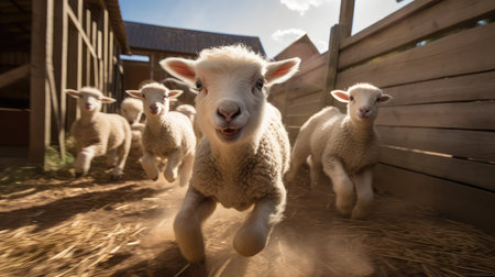 Majestic ecological rams and adorable lambs at the domestic farm 16k super quality image