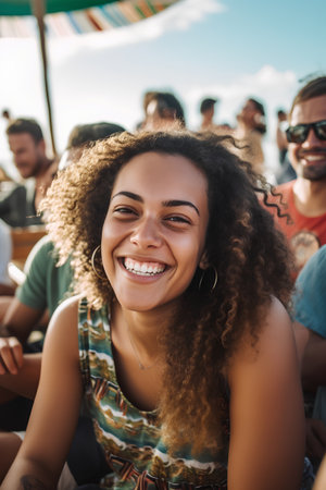 Portrait of a young african american woman smiling and looking at camera at a music festival