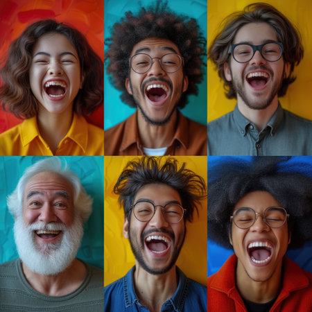 Joyful Expressions in a Colorful Collage Featuring Diverse Individuals Enjoying Life Together