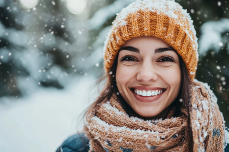 Radiant Young Woman Relishing Winter's Beauty Outdoors