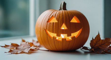 Spooky Halloween pumpkin with carved face