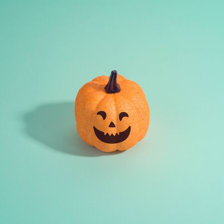 Halloween holiday creative background with jack o lantern glitter pumpkin