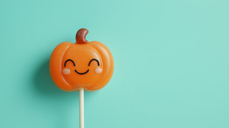 A delightful pumpkin lollipop smiles happily, bringing joy to all who see it this autumn.