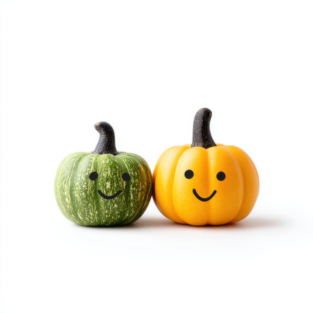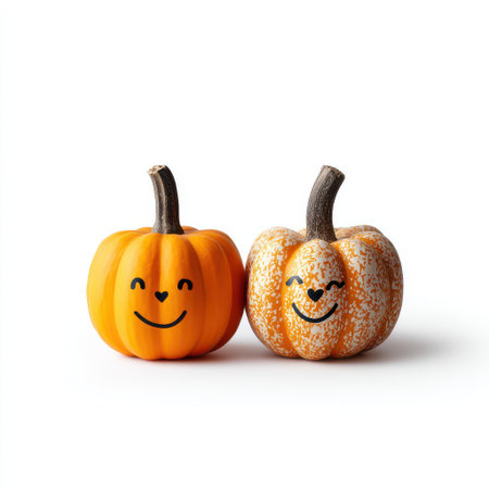 Happy and Playful Pumpkins with Smiling Faces Perfect for Autumn and Halloween Decorations in Bright Orange and White Color Scheme