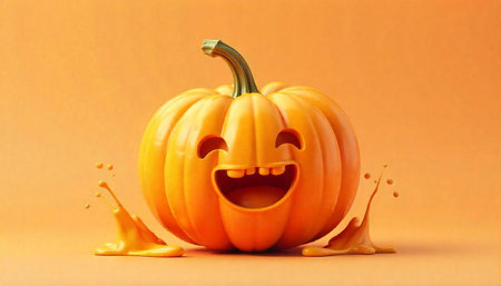 Cheerful Jack-o'-lantern with orange juice splashes for Halloween fun