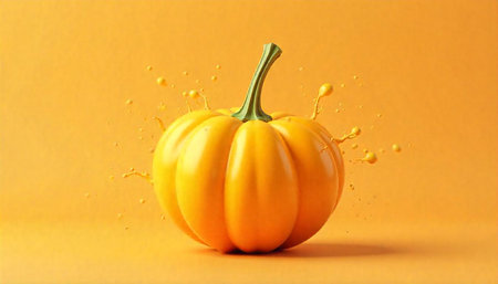 Bright yellow pumpkin with paint splash on matching background