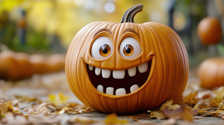 A funny cartoon pumpkin character, waving and smiling. . --ar 16:9 --v 6.1 Job ID: 2b5fdbf6-74e0-4814-af1f-eb3622cfcf26