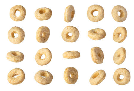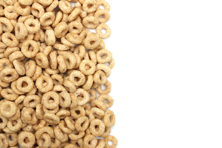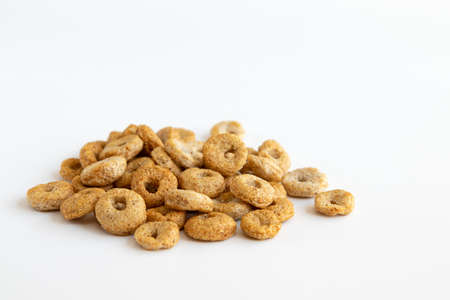 heap of cereal isolated on white background, delicious and useful rings breakfast cereal, side view