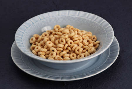 Colorful cereal rings in a bowl on the table as a breakfast dish