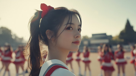 Flawless Cheerleader in Synchronized Formation