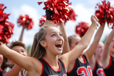 Enthusiastic Cheerleaders Inspire Crowds Spirit, Elevating Motivation At High School Stadium.