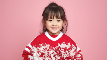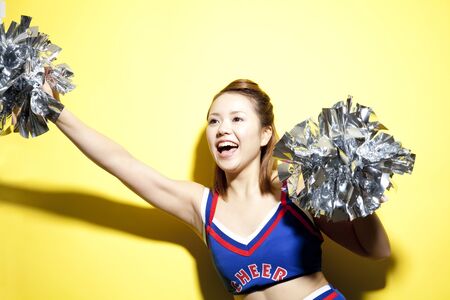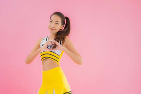 Portrait beautiful young asian woman cheerleader on pink isolated background