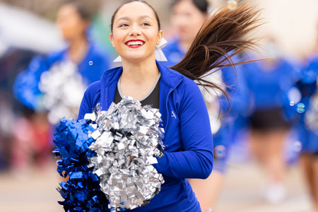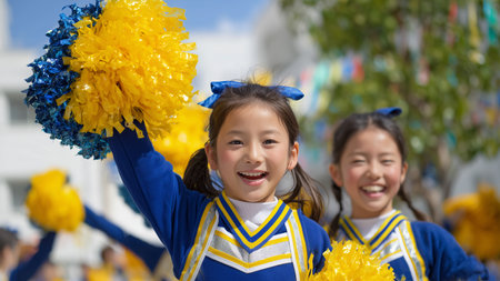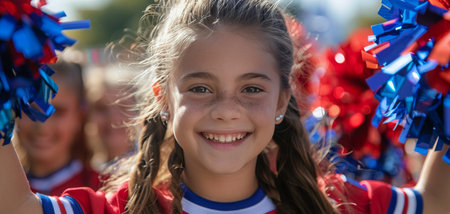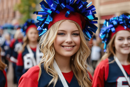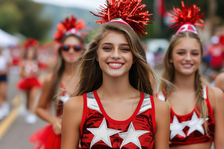 A vibrant Labor Day parade bursts with energy as cheerleaders perform festive routines, celebrating hard work and community spirit The grand celebration showcases unity and togetherness, highlighting the importance of labor and its contribution to society AI Generative