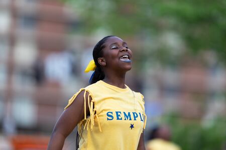Louisville, Kentucky, USA - May 2, 2019: The Pegasus Parade, Young african american woman dancing during the parade