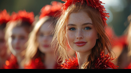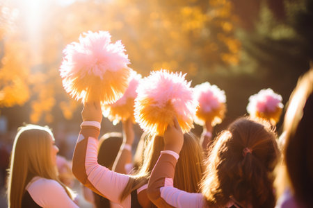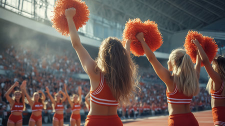 The excitement of the sidelines: a portrait of American football team cheerleaders, exuding positivity and team spirit
