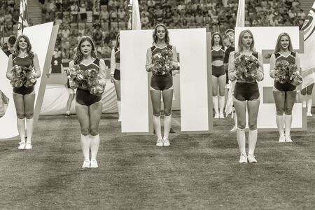 RUSSIA, MOSCOW - MARCH 27: Unidentified cheerleaders on World Sambo Championship Kharlampiev memorial in Luzhniki sport palace, Moscow, Russia, 2015
