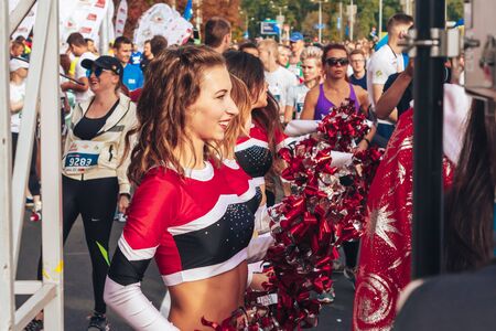 September 15, 2018 Minsk Belarus Half Marathon Minsk 2019 Cheerleaders dance in front of athletes