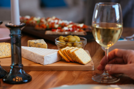 Wine and cheese served for a friendly party in a bar or a restaurant.
