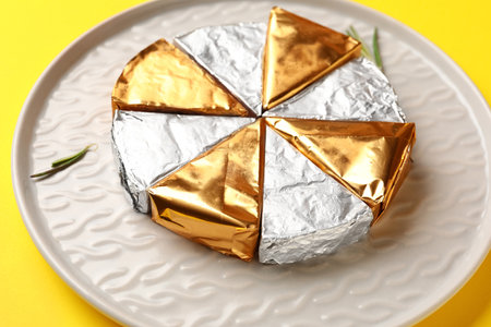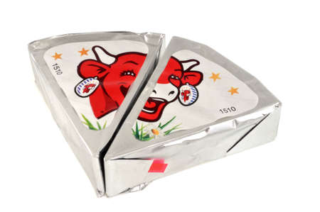 Cheese in creamy triangular spreads, wrapped in aluminum foil