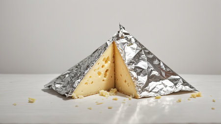 triangular piece of cheese wrapped in silver foil