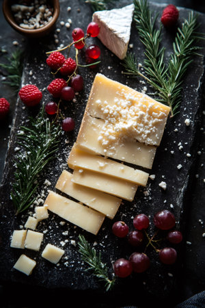 AI Generated. Elegant Culinary Display with Cheese Wedges and Fresh Herbs