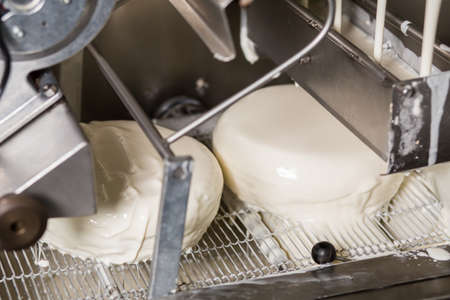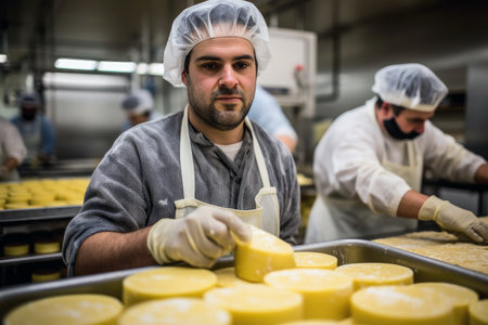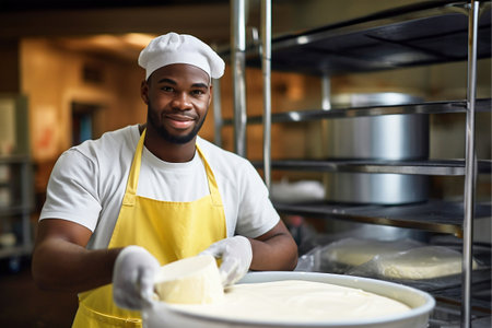 Molding of cheeses, curds in molds generative ai